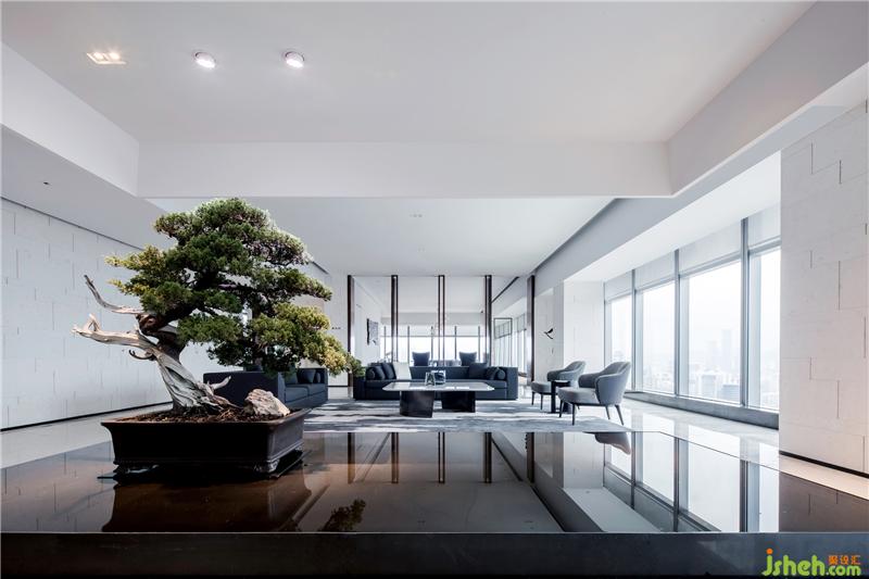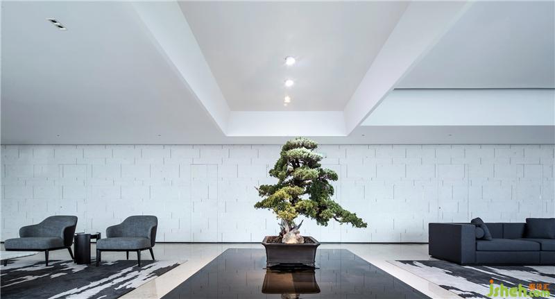蒼勁青松、平靜水景、小巧鵝卵石,以及與之對應(yīng)的有層次感的天花形式,為空間注入生活的藝術(shù)。