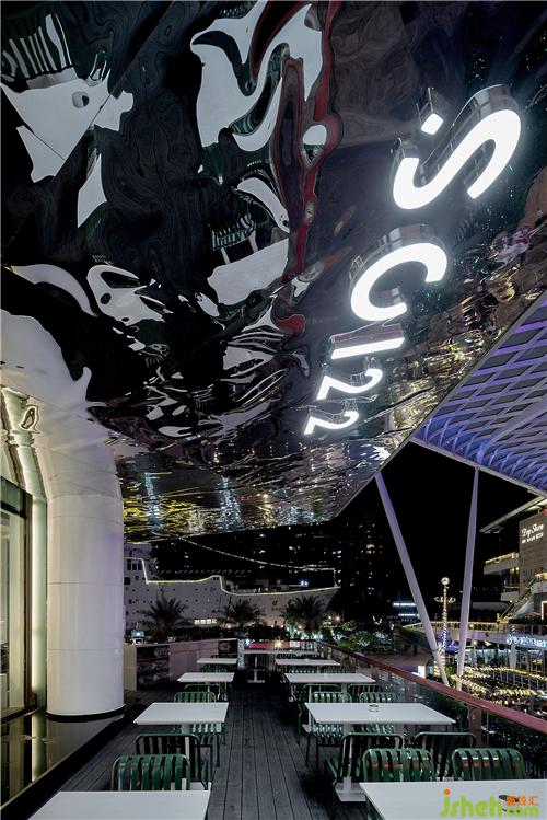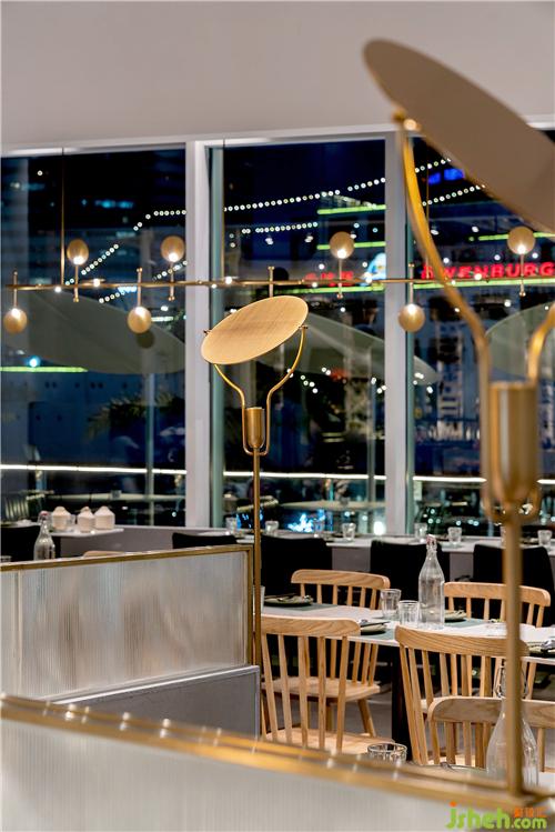 混凝土磚、鏡面、黃銅、藝術(shù)玻璃......埂上設計在材料選擇上,不僅僅考慮造價和純粹技術(shù)的因素,同時考慮情感體驗、藝術(shù)想象。餐廳西面擁有廣闊的觀景視野,搭配大面的落地玻璃,將自然引入空間,讓人眺望海上世界美麗的海景與夜景。
