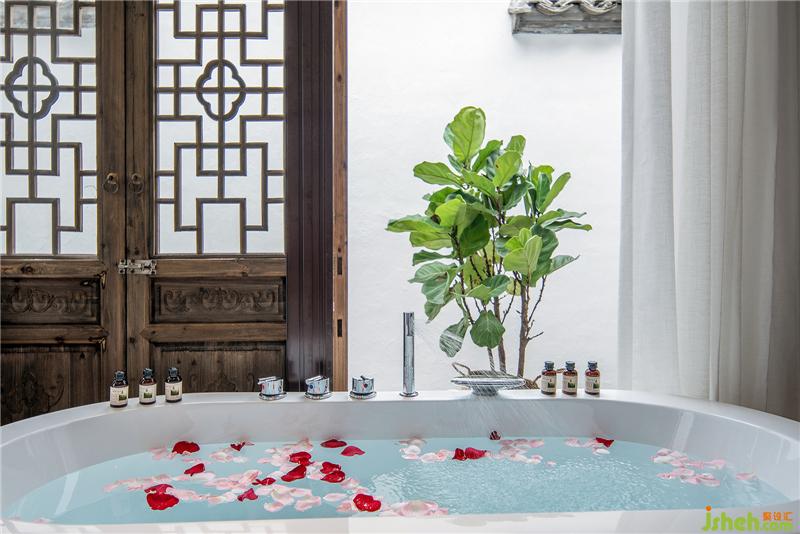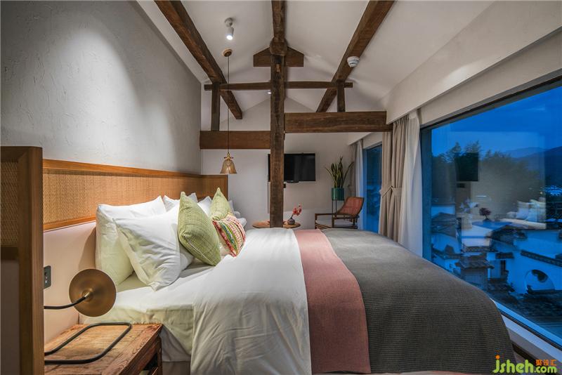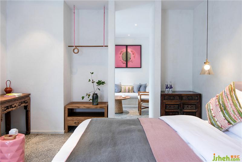 門罩、天井、庭院和磚石雕鏤的漏窗矮墻將客房分列兩側(cè)互不干擾確保客房的私密。