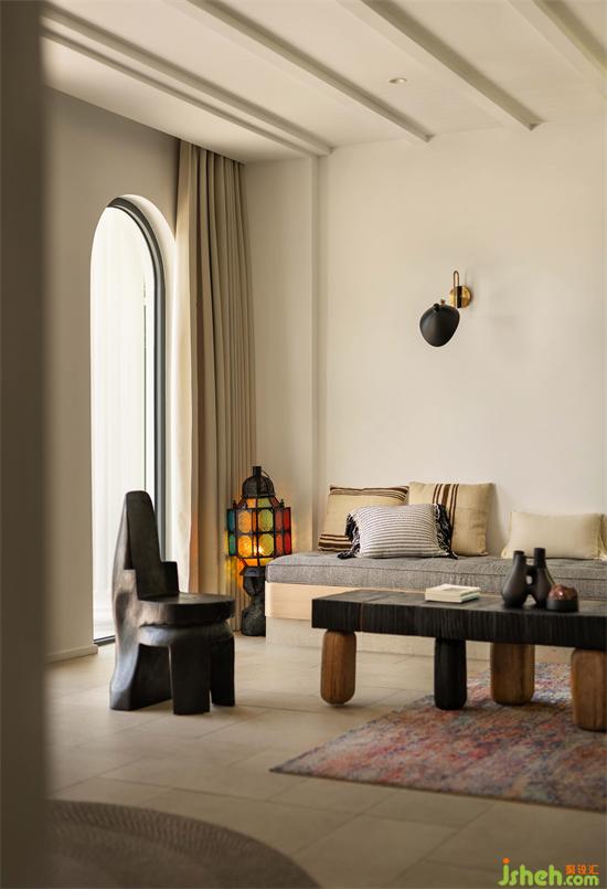 公共區(qū)域中豐富的木質(zhì)家居陳設(shè),以柔和的肌理為空間的情緒傳遞溫暖。樹木生長(zhǎng)的年輪印刻著過往的歲月痕跡,也傳遞著都市人勇于掙脫城市束縛、投身自然的設(shè)計(jì)理念:度假酒店設(shè)計(jì)以城市孤島中的漂浮意象,度假酒店設(shè)計(jì)投射現(xiàn)代人內(nèi)心渴望理解與親近的孤獨(dú)狀態(tài)。