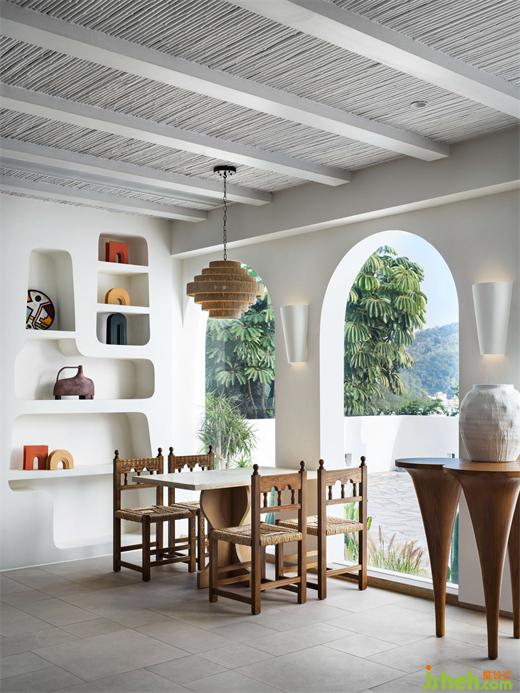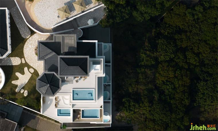 此次設(shè)計(jì)故事圍繞三棟建筑展開,以優(yōu)雅、私密為空間敘事主題,蜜悅懸崖泡池美宿設(shè)計(jì)借助山勢(shì)將懸崖泡池、洞穴、藍(lán)白建筑的優(yōu)雅形態(tài)與自然美景渾然相融,層疊林立、錯(cuò)落有致從高空俯視,以意象手法將圣托里尼海天一色的假日風(fēng)情充分演繹。