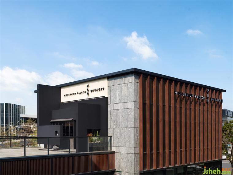 『千年隼』位于這繁華都市一隅,隱于都市繁華風(fēng)月,千年隼日本餐酒館設(shè)計掬一捧人間煙火,不局限于晨起暮落,于此歲月簡靜,風(fēng)煙俱凈。建筑立面在概念上和美學(xué)上延續(xù)日本料理細節(jié)精致的簡素之美。美食與設(shè)計的相遇,即是設(shè)計師在感悟文化與精神的內(nèi)核后,以獨有的設(shè)計感觸描繪出對空間的感悟。