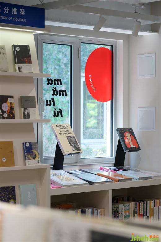在白色墻漆與柜體的掩映下,步入的書籍區(qū)則讓節(jié)奏完全沉淀下來。