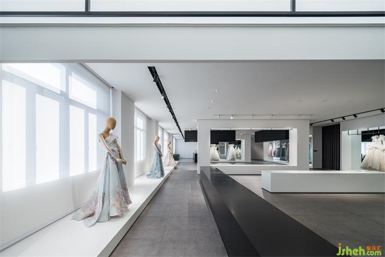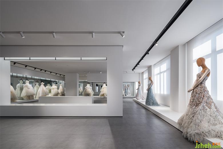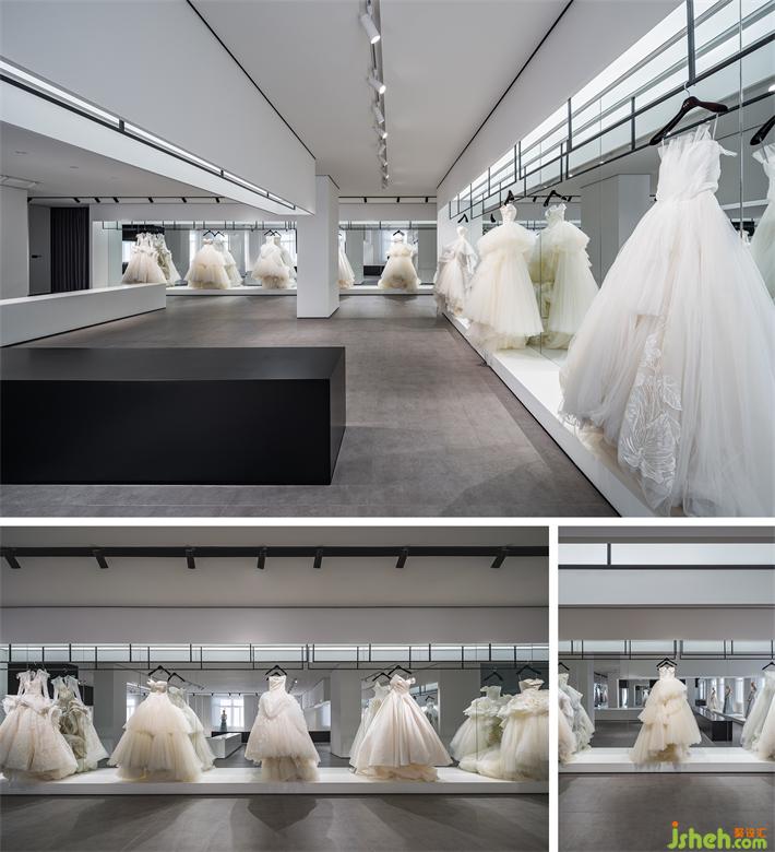 設(shè)計循序漸進(jìn)走向另一條價值賦能的解題思路。視覺成為引導(dǎo)心理的暗語,無需標(biāo)注,禮服展廳設(shè)計便梳理出共識的動線,去影響人在其中的觀感,體驗,以及行為。