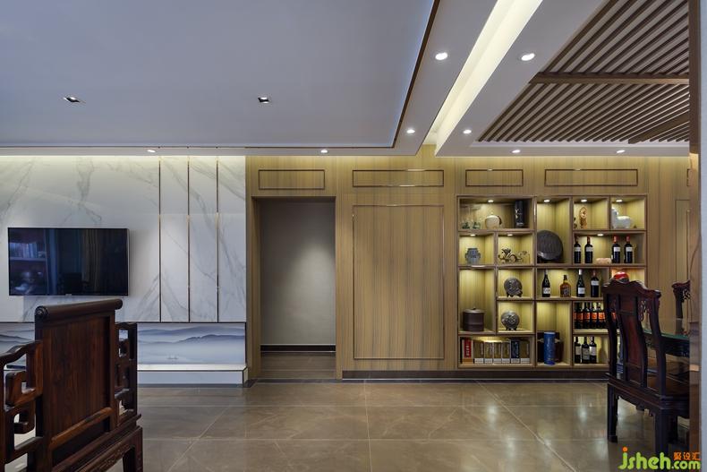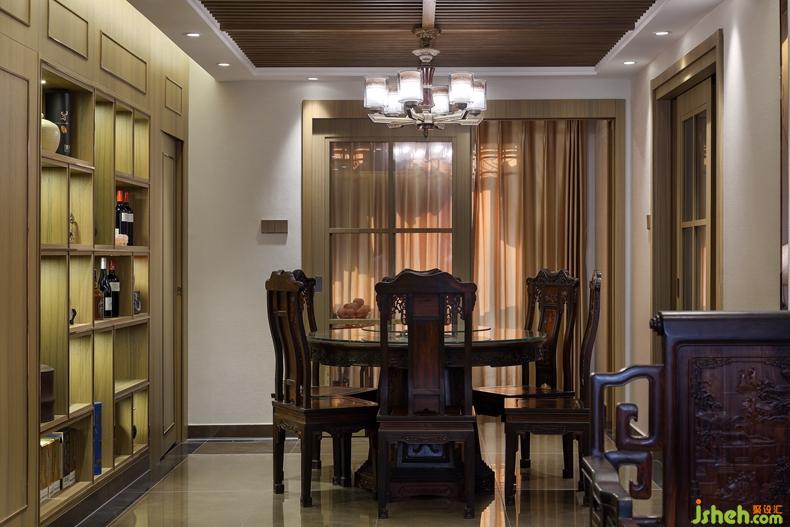 餐廳與客廳相連為一個整體使得整個空間更加寬闊、舒服,深圳室內(nèi)設(shè)計(jì)師定制的酒柜是業(yè)主的心頭好,既作墻用,節(jié)省空間又作酒柜,可擺放藏酒與藝術(shù)品,柜子鮮活的嫩木色彩與紫檀餐桌的厚重紫黑色形成對比,既有清新活潑又有醇厚古樸,兩種原木色同處一個空間互相制衡,又相得益彰。