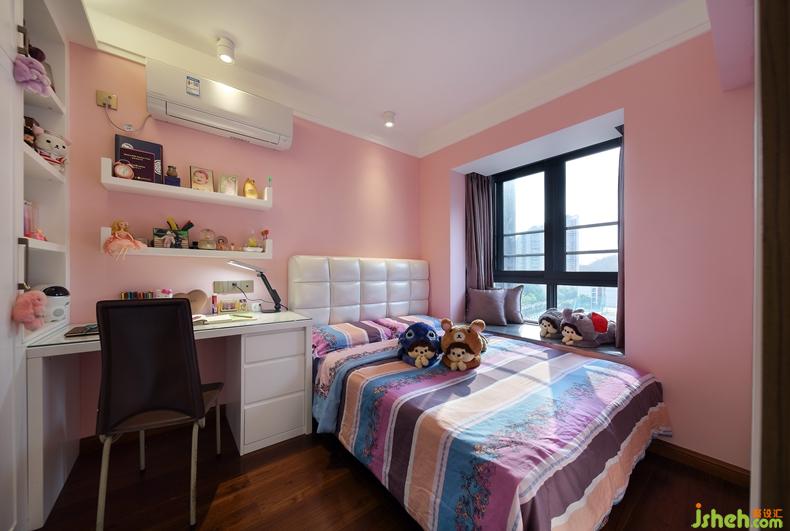 少女心爆棚的粉紅色墻令人心動(dòng),深圳室內(nèi)設(shè)計(jì)師搭配白色天花,啞光漆的衣柜,清新純潔,晌午的陽(yáng)光從窗外照射進(jìn)來(lái),懶洋洋的格外溫馨。