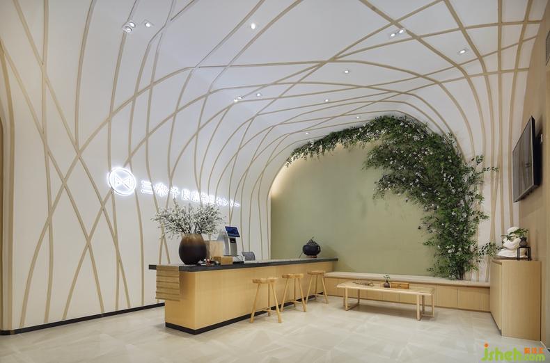攀爬上墻至天花的裝飾植物,淡淡的抹茶色的墻,仿佛令人置身愛麗絲的花園一樣。在繁華的都市里,生活節(jié)奏不斷加快,工作壓力與日俱增,走進(jìn)這大森林一般的治愈空間里,全身心都得以放松。