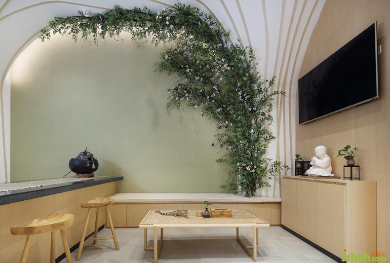 休息區(qū)占地面積雖小,卻令人舒心。養(yǎng)眼的抹茶綠墻、小花點(diǎn)綴的樹枝,棉麻質(zhì)感的軟墊、茶幾上有茶招待、桌子小小的泥塑佛像和精致的小件盆栽等等,深圳室內(nèi)設(shè)計(jì)師讓簡(jiǎn)單的環(huán)境里卻又意味深遠(yuǎn)。空氣中流露著一種無車馬喧,飛鳥相與還的休閑自得的意境。讓人在等待的時(shí)光里不那么焦躁和不安。