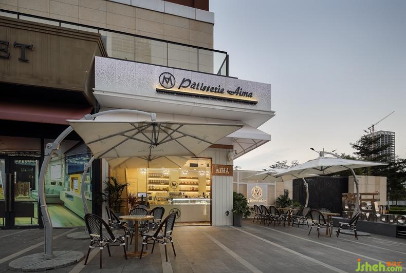 愛馬是一家法式西點店,店面雖小,五臟俱全。整個店面在外觀的設計上,白色為主調,代表著浪漫的元素,深圳室內設計師鎏金點綴彰顯著法式的尊貴印象。