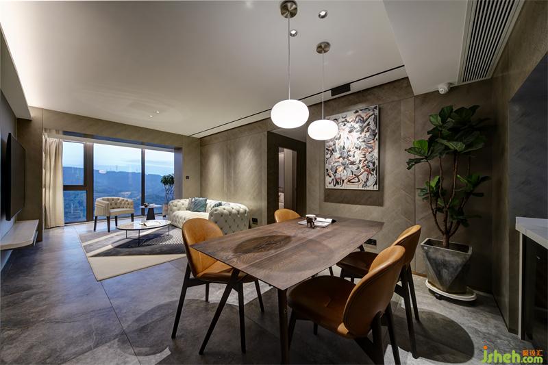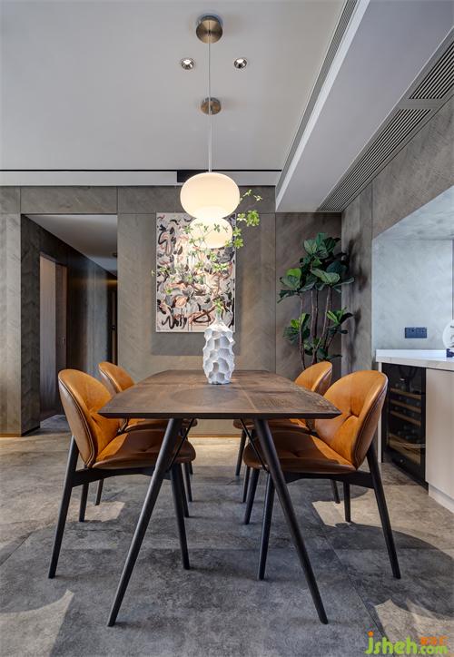 不同質(zhì)感的材料碰撞演繹餐廳的溫馨