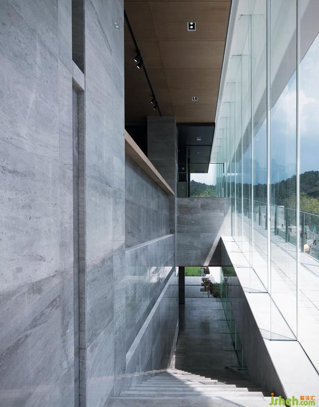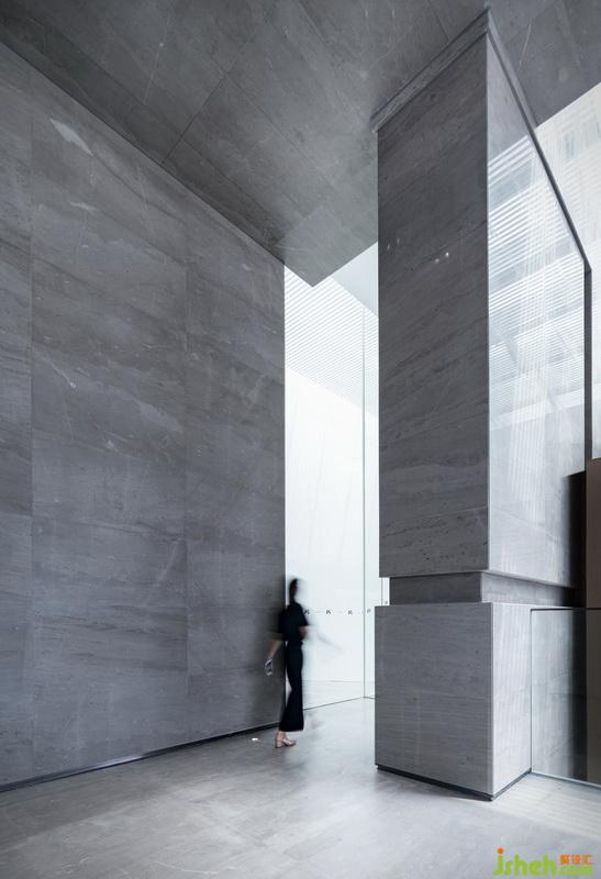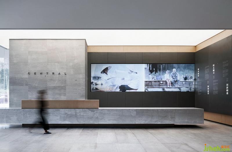 主要材料:啡色木飾面、灰色大理石、鋁單板、不銹鋼、透光膜