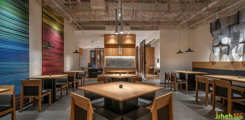 主要材料:夯土漆、瓷磚、砂巖、銅網(wǎng)、藝術(shù)漆、藝術(shù)裝置、金屬鈴鐺