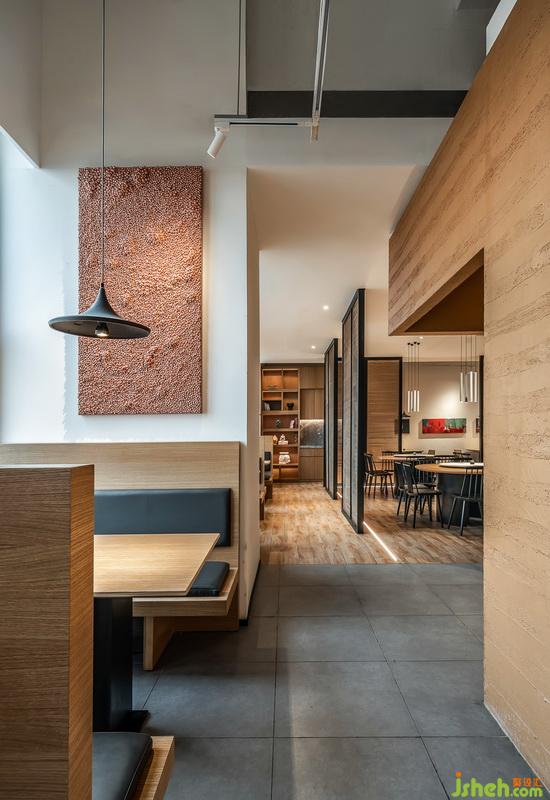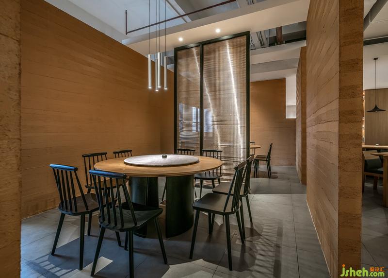 南方鄉(xiāng)下在普通人心理層面形成的印象是什么?當(dāng)然是“潤”。去過南方鄉(xiāng)下的人,一定見過那些用版筑的方式制成泥磚后最常見又最廉價的農(nóng)居。設(shè)計師以此作為空間的材料基點,讓色調(diào)與肌理形成有內(nèi)在聯(lián)系的呼應(yīng),在都市中帶入農(nóng)居的概念。