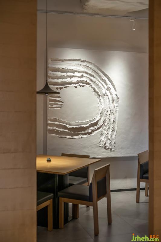 最終將泥土的色調(diào)轉(zhuǎn)換為“金色”印象的,是設(shè)計師在主入(出)口以裝置的方式安放的一叢成熟的稻谷。它的存在,將客人的感受迅速帶入到一個通過暗示然后自我建構(gòu)的自然環(huán)境的狀態(tài)。