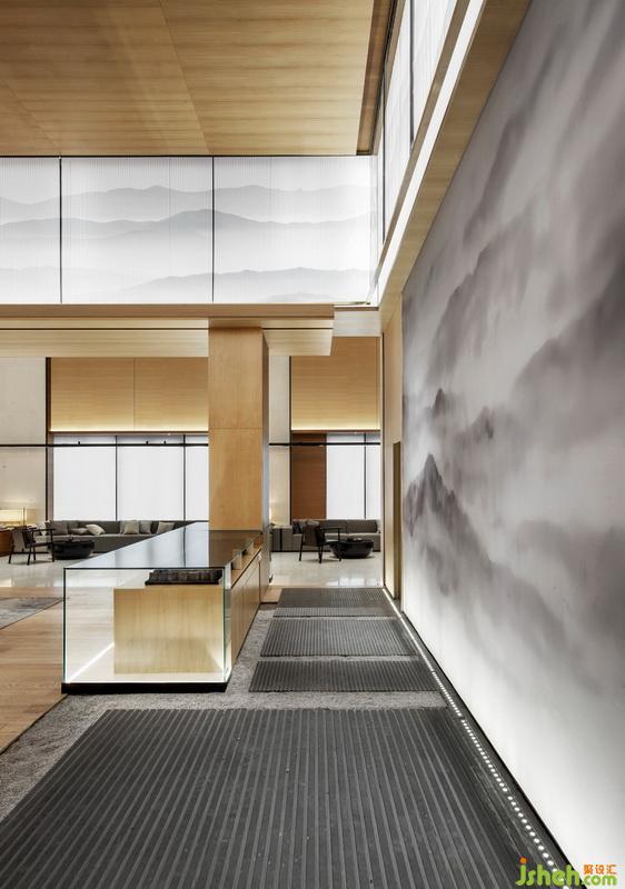 一個(gè)空間,尤其是有足夠體量的時(shí)候,要讓人一見(jiàn)即驚嘆,實(shí)在不是什么難事。而要將同樣大體量的空間,做得讓人一入而有被擁抱的溫軟感覺(jué),那就不容易了。因此,設(shè)計(jì)師在考慮方案內(nèi)涵形成的過(guò)程中,仍然承接樂(lè)天哥詩(shī)中的自然形態(tài),只是由“遠(yuǎn)”及“近”,由“外”入“內(nèi)”,將自然光引入到室內(nèi),使詩(shī)中明媚的“動(dòng)”的生氣一轉(zhuǎn)而為溫馨的“靜”。