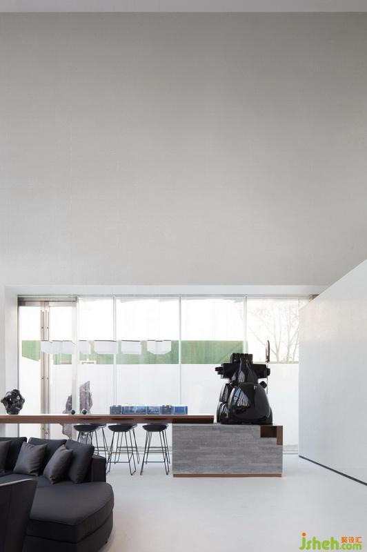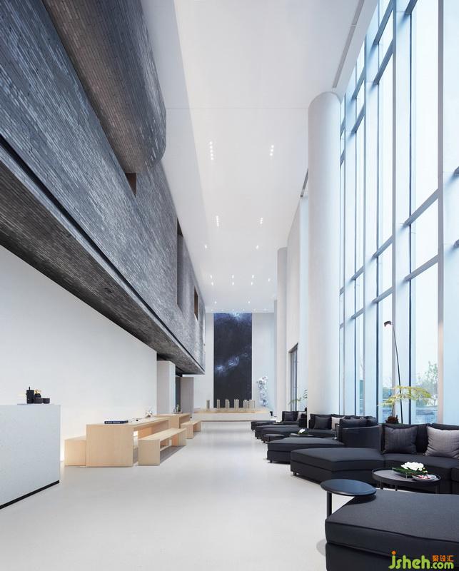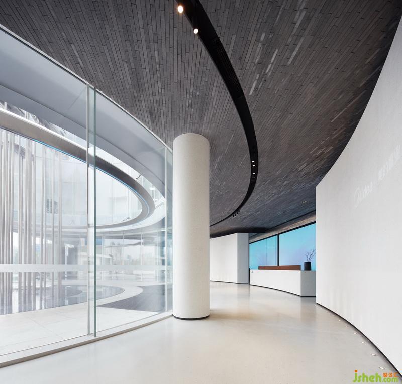 主要材料:青磚、水磨石、古銅色不銹鋼、軟膜、漸變玻璃、木飾面