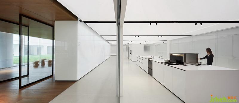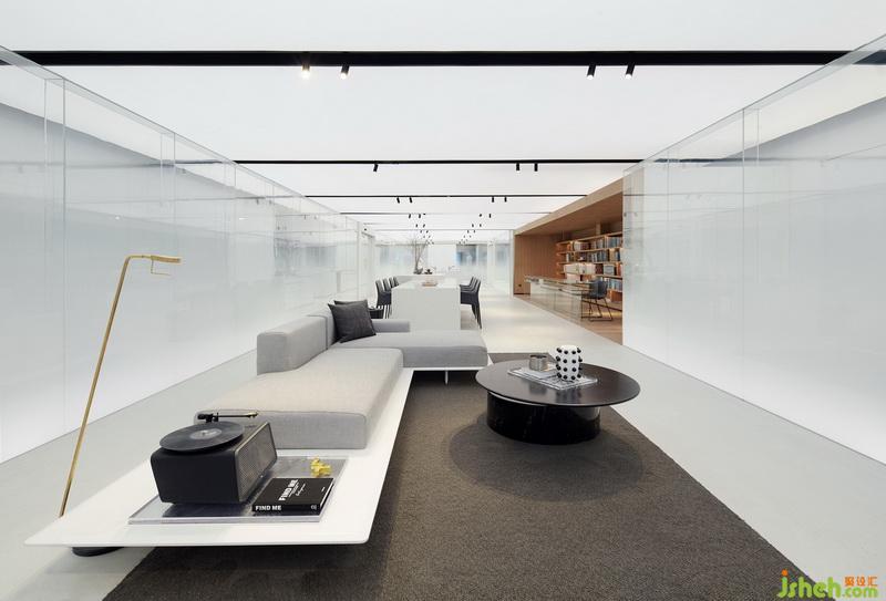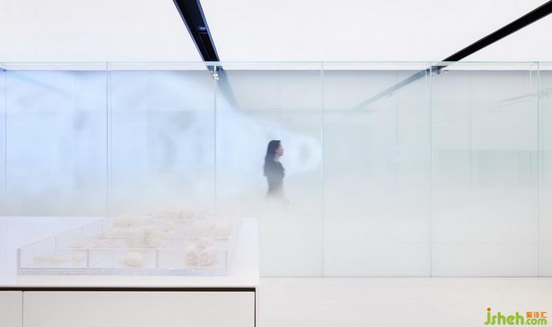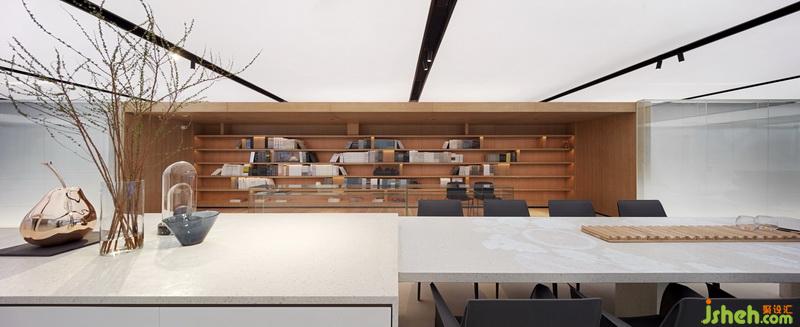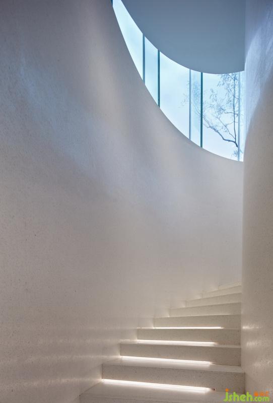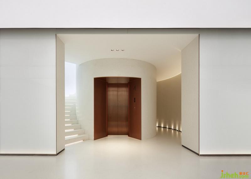 設(shè)計師在空間的整體處理上,因地制宜,將整個空間理解為一幅徐徐展開的手卷,以青磚粉壁為基調(diào),兩種材質(zhì)的肌理和色差做反向?qū)Ρ?,青磚與水磨石的對話,表達(dá)“不用粉染,以云山為墨戲”的南宗山水情態(tài),使空間盡量虛和蕭散,天真幽淡。而這也是對蘇南地區(qū)幾百年審美精髓的溯源。在處理平行視覺的同時,設(shè)計師并沒有忘記對仰視視覺應(yīng)有的把握。中國人講味道,首在“鹽梅”,把握得合適,尋常之物便能體現(xiàn)神奇——在各功能空間部分,設(shè)計師將太湖石的孔洞與風(fēng)景作為理念,用簡潔的手法聯(lián)系在一起,不多做渲染,意到即止。地上部分,用懸浮的巨石啟迪未來。