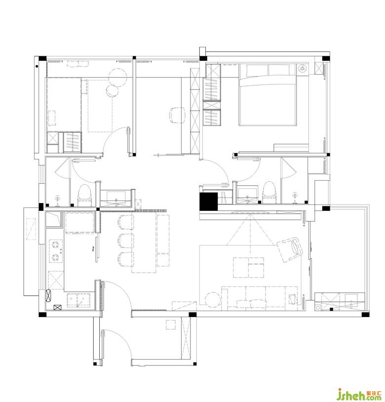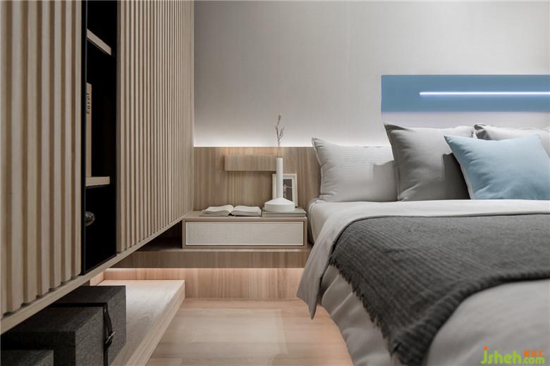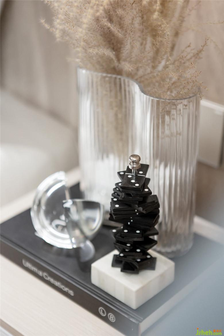 白色棉麻與不同質(zhì)感的灰度交織,并適時(shí)融入淡淡的灰藍(lán)絨面質(zhì)感,穿插少量黑色線條,材質(zhì)和色彩之間輕柔過渡。