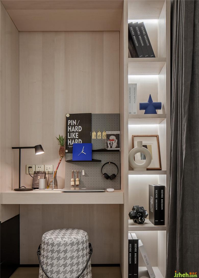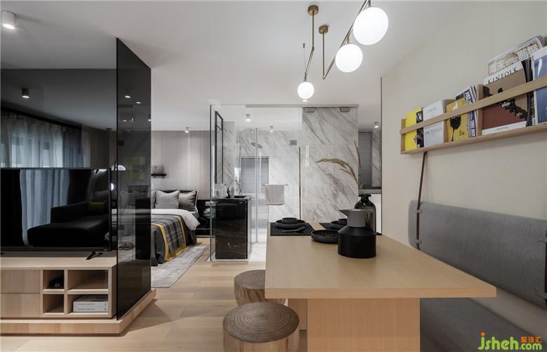設(shè)計(jì)對功能的介入,決定著生活方式的展現(xiàn)層次:餐桌的功能被極大地豐富化,既可以在這里跟朋友一起動手探索美食的樂趣,也可以獨(dú)自研磨咖啡,在陽光下享受一杯咖啡、一本書的靜好時光,對于生活和工作界限嚴(yán)重重合的人群來說,這里也可以是一個臨時的工作臺,墻上的雜志架,是“她”生活的切面。