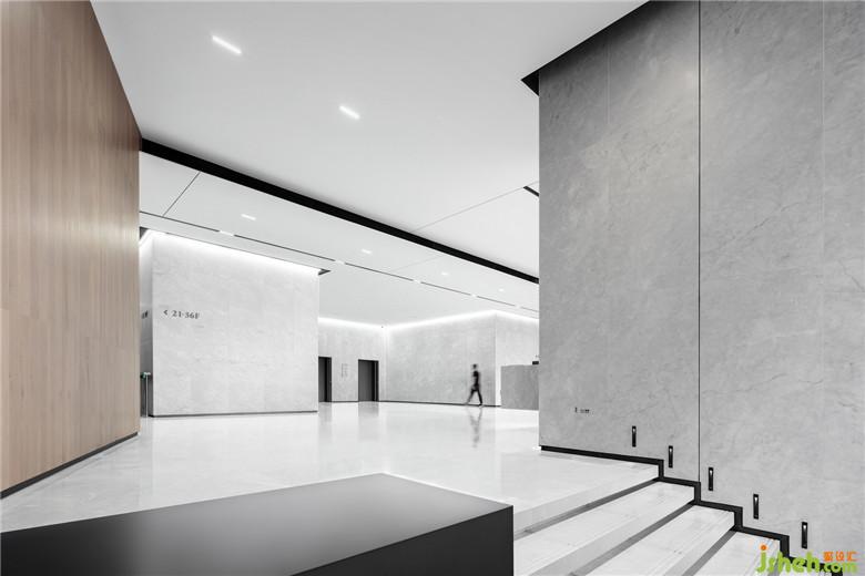 大廈首層入口處的嶺南騎樓立柱被完整保留,具有年代感的大理石立面被更現(xiàn)代的不銹鋼板取代,復雜的石材肌理被簡化為平整的金屬灰色,讓沉重的立柱變得輕盈明快,以現(xiàn)代的設計美學賦予曾經(jīng)的“砥柱”新的活力。