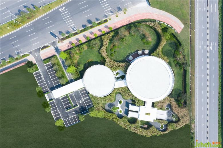 體驗館由兩個大小不等的圓形組成,連結(jié)兩者的是一條長廊,俯瞰形似《星際迷航》太空站跌落的一部分,匍匐在大地之上,與櫛比鱗次的高樓形成鮮明的對比。體驗館下方正在建造佛山3號線地鐵美旗站,未來周邊將建起多重立體軌道交通體系,進(jìn)而實現(xiàn)城市功能、生活空間與交通通勤的一體化,為數(shù)百萬商務(wù)精英提供高效能服務(wù)。會所設(shè)計
