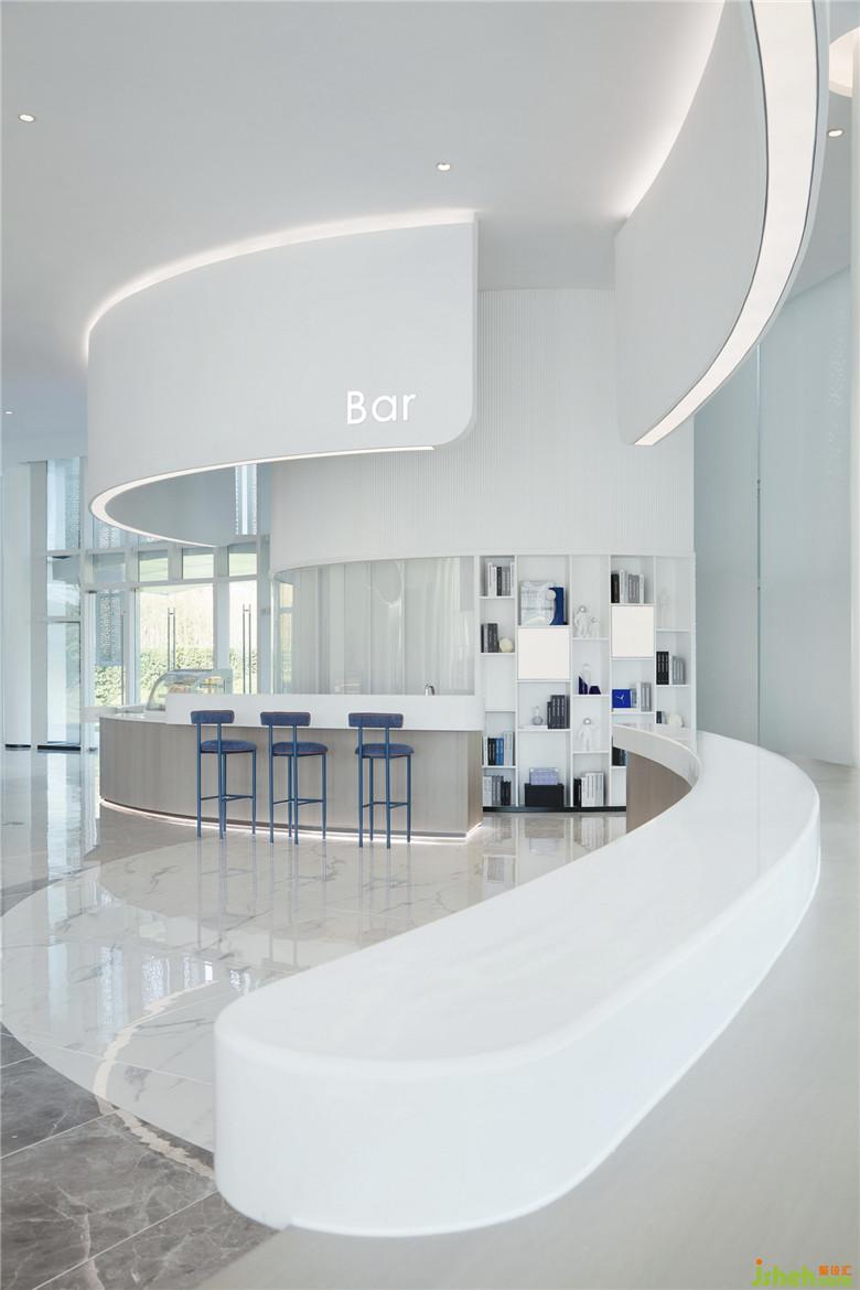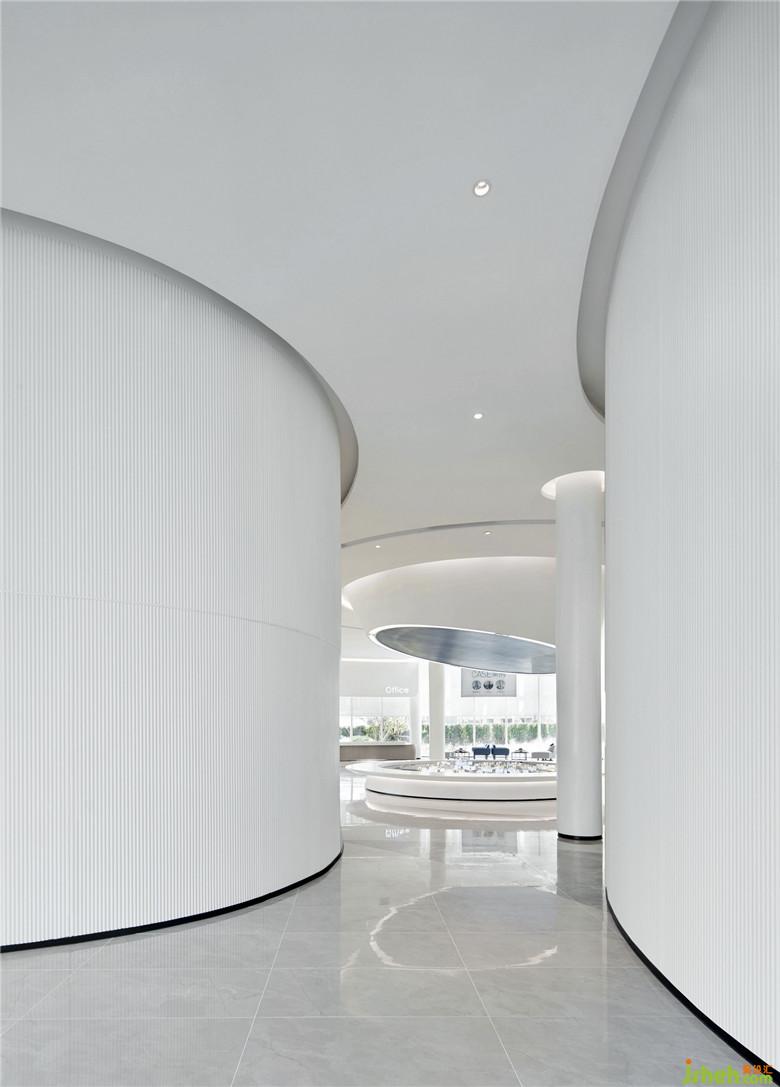遵循靈活簡(jiǎn)潔的原則,整體空間采用弧形和環(huán)形的創(chuàng)意造型設(shè)計(jì),嚴(yán)格挑選色彩進(jìn)行構(gòu)建,天花與墻面采用留白手法,把空間的主體留給體驗(yàn)者。云白色作為主色調(diào),既貼合天空與科技的主題,也符合人們追求極簡(jiǎn)的時(shí)代情緒——極簡(jiǎn)只是手段而非目的,斷舍離是為了騰挪出更多的空間容納更高級(jí)的思考。