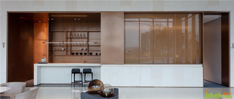 桃花源既是中國(guó)傳統(tǒng)文人對(duì)理想的追求,也是中國(guó)當(dāng)下語境里的烏托邦暢想;不僅是個(gè)人的愿景,更是大視角下的社會(huì)圖景,閃耀著東方色彩的人文之光,而空間設(shè)計(jì)必須將之變成立體的意象,讓人可以走進(jìn)去的真實(shí)場(chǎng)景。共生形態(tài)選擇古典的朱砂紅、墨黑與金色,點(diǎn)綴端莊穩(wěn)重的琉璃藍(lán),和空間中使用的石材、黃銅與木材堆疊穿斫,在悄無息中拉長(zhǎng)了時(shí)空的距離,具象化空間的神秘虛幻色彩。錯(cuò)落別開的屏風(fēng)上濃重的一筆墨跡,凸顯灑脫東方藝術(shù)視像。