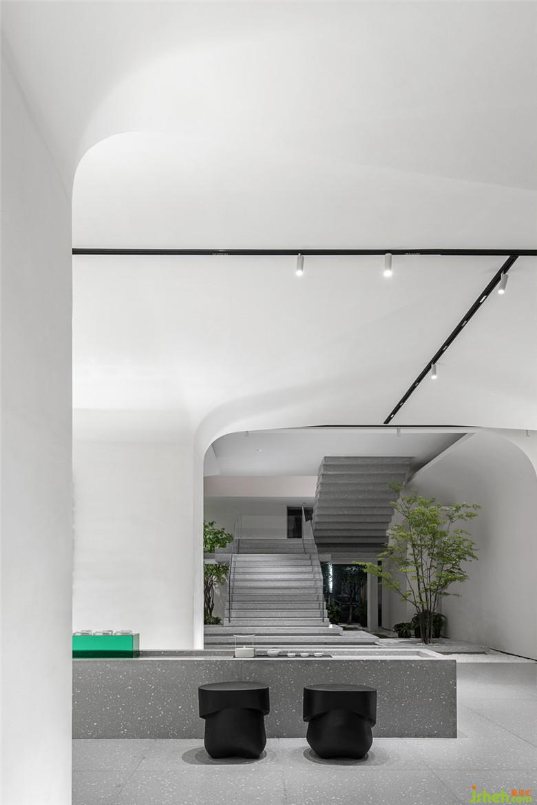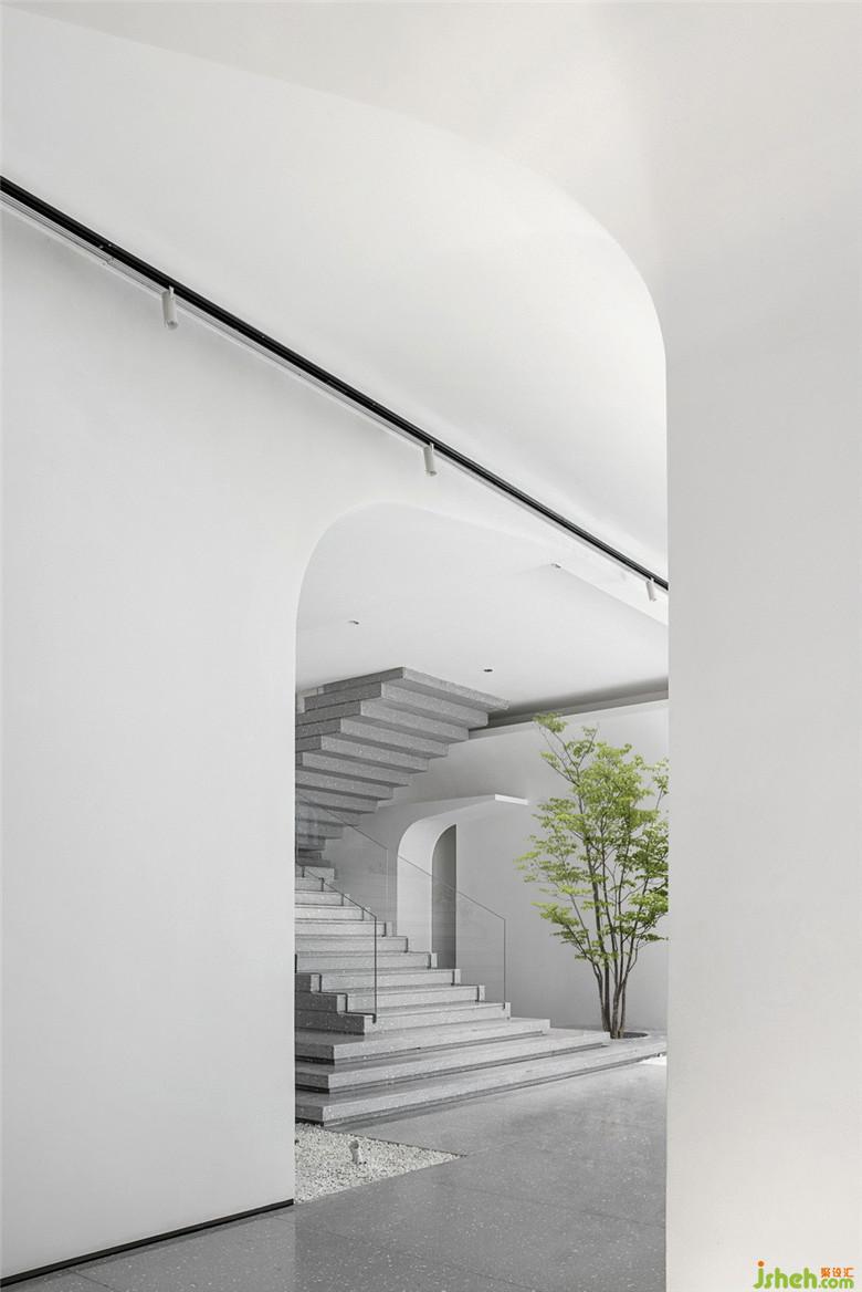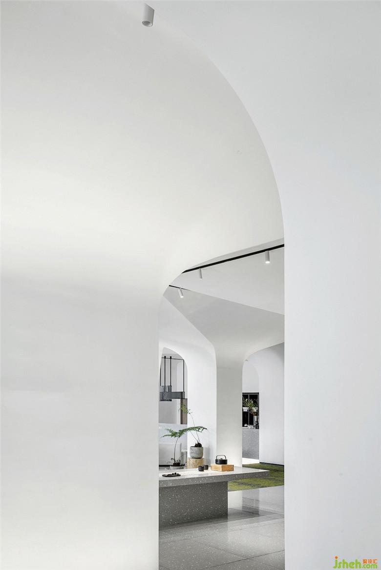同時(shí),借由空間中的“枝”、“干”,順勢(shì)伸展開的曲直有度的線條,自然地切割與圍合出了不同的功能空間區(qū)域。售樓處設(shè)計(jì)