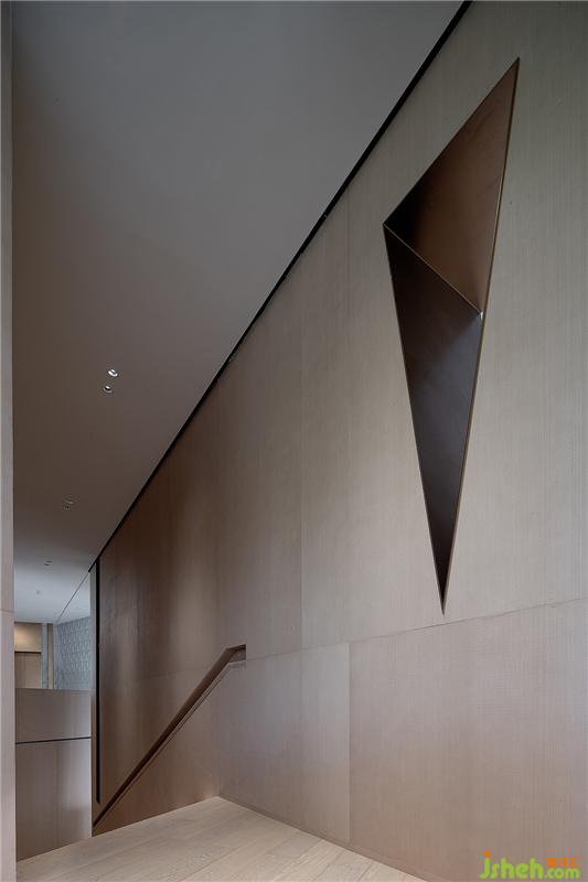 晶體結(jié)構(gòu)的切割方式?jīng)Q定了其璀璨程度。在去往二層的空間中,從頂面到墻面的關(guān)系是一種結(jié)構(gòu)的穿插,宏觀而言,精準(zhǔn)的切割方式讓每一個形體的變化帶出邊界的光芒。