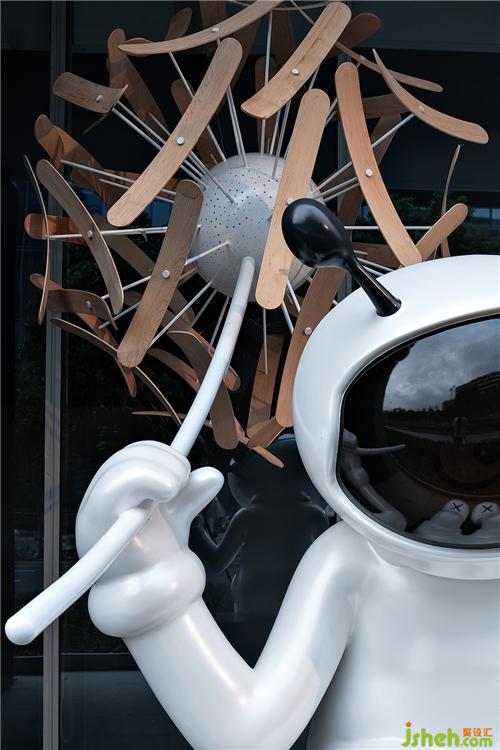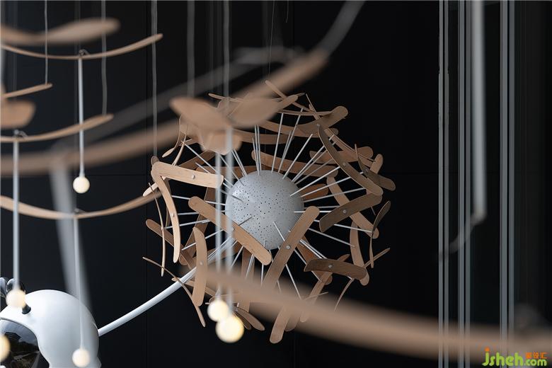 裝置手持的蒲公英和竹蜻蜓燈連接成一個動態(tài)的畫面,由展廳外延伸入內(nèi),連接起兩個空間,有效拓展了視覺深度。