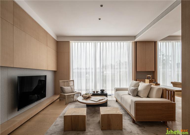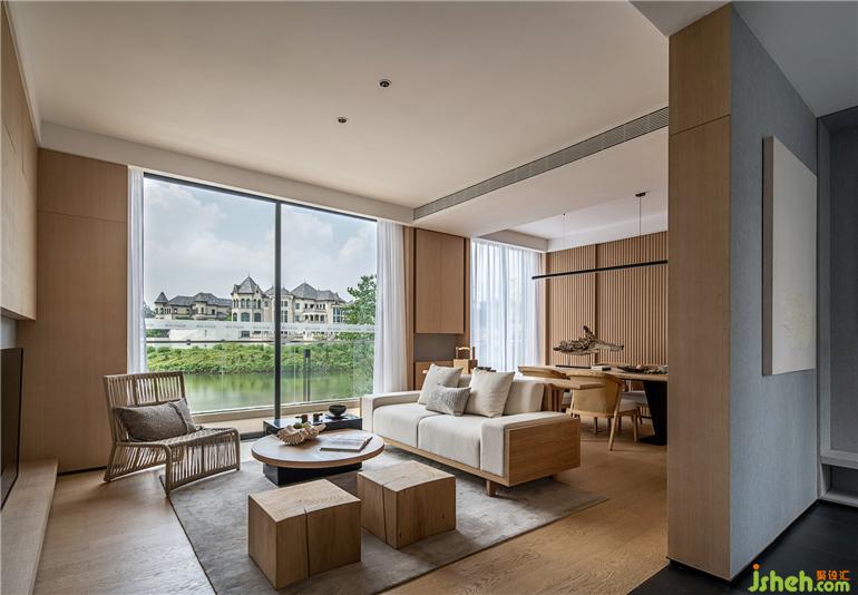 作為美的山水半島莊園的樣板房之一,站在在地元素深厚的文化上眺望,別墅設(shè)計(jì)者通過對東方美學(xué)特征獨(dú)有的呈現(xiàn),將自然的人居概念延伸至生活深處。空間向家宅的夢想者開放,在此氛圍之中,對生活與自然的記憶和想象相互交融,打開了家宅空間的核心價(jià)值和詩意深度。