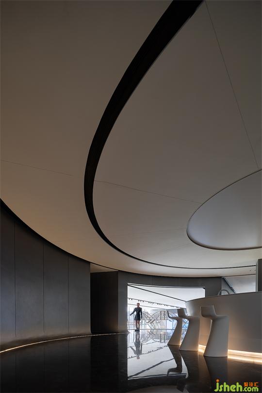 路演大廳內(nèi),未來的城市圖景絢爛而精彩,數(shù)字大屏以超現(xiàn)實的視覺力生成流動的鏡像體驗。
