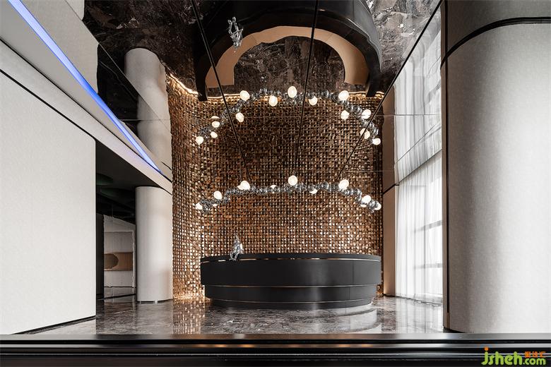 核心筒一側(cè)的鏡體墻面與空間產(chǎn)生鏡像投映,形成一虛一實(shí)兩個(gè)空間的疊加。