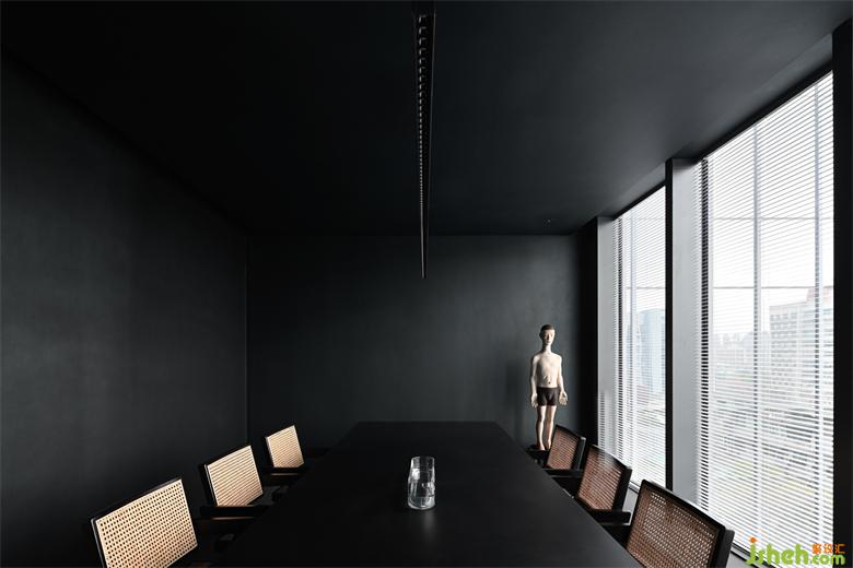 In the planar layout, the white sofaleans against the horizontally extended desk in an unconventional way, which formsthe structure of the middle island. This not only clarifies the spatial order but also leaves adequate spacefor movinglines for the entrance.