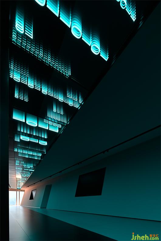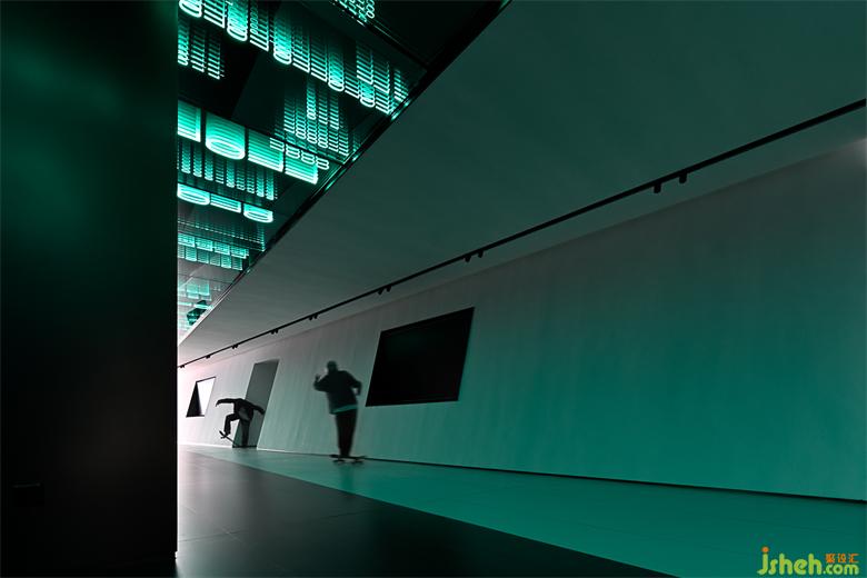 它們猶如某種初始數(shù)據(jù)的接入,在流動(dòng)的狀態(tài)下,賦予整個(gè)空間強(qiáng)烈的科技感與未來(lái)感的同時(shí),也指引著空間行進(jìn)的方向。