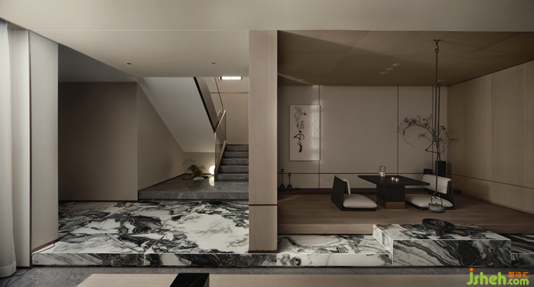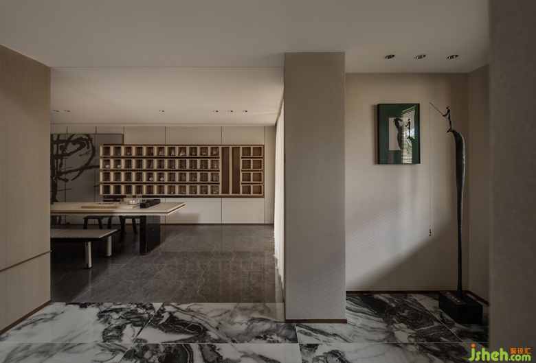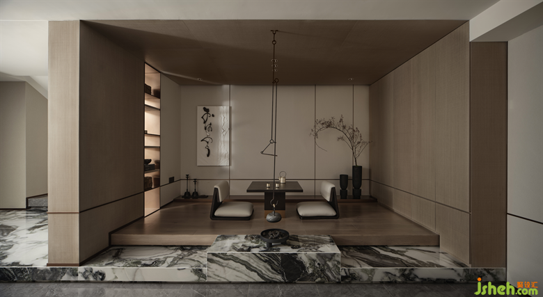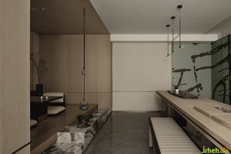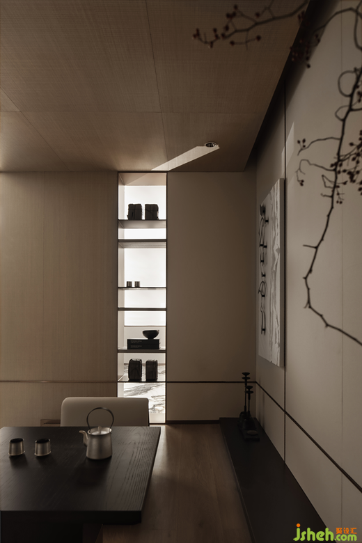 一個(gè)清幽的場域,形成于茶室與多功能空間的對映之中。