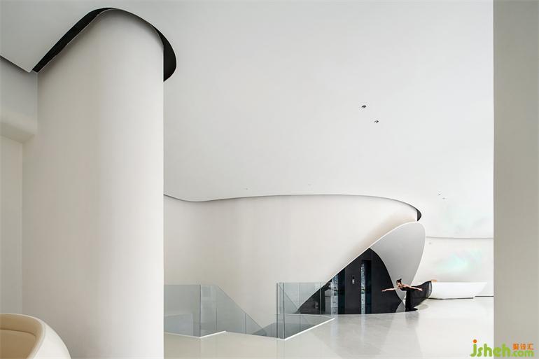 立面線條縱向升起,匯聚于天窗,成就一種形而上的仰望,古典與未來(lái)在此相互轉(zhuǎn)譯,構(gòu)建出新的時(shí)空語(yǔ)匯。
