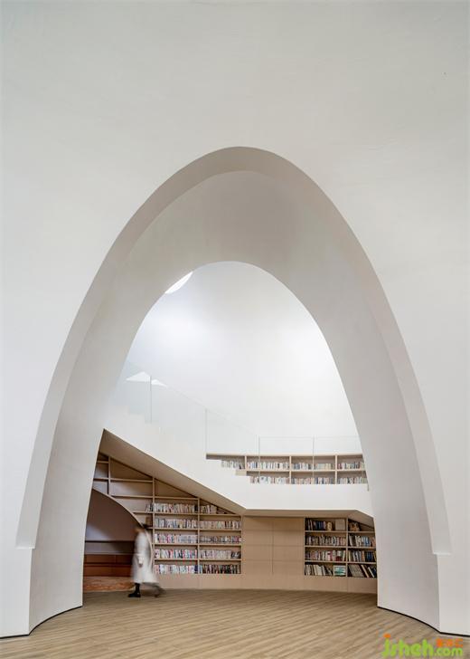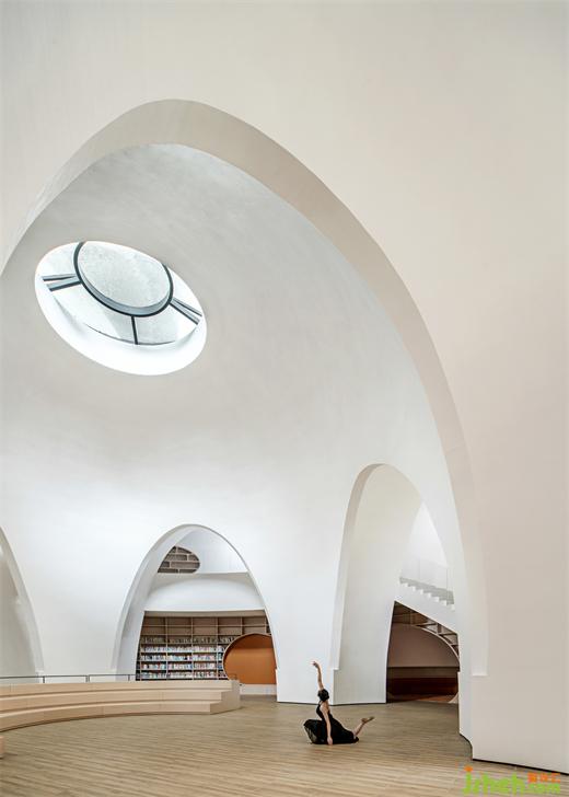 拱頂?shù)慕Y(jié)構(gòu)形態(tài)賦予書吧一種古典的空間內(nèi)核,這種既熟悉又陌生的感受為人們帶來(lái)平靜。