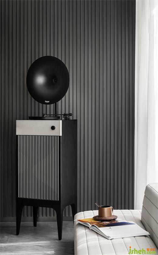 在附一層的公共活動區(qū),老式打字機、電影膠片、老式電影放映機等眾多老物件,銷售中心設計以藝術收藏的方式進入空間細節(jié);帶有古典意蘊的書案和置于中心位置的火塘,則以傳統(tǒng)的形態(tài)參與進現(xiàn)代生活。位于空間最內(nèi)側(cè)采光天井,使得陽光洗墻而下,現(xiàn)在時與過去時交融,新的感知被某種瞬時性所激活。