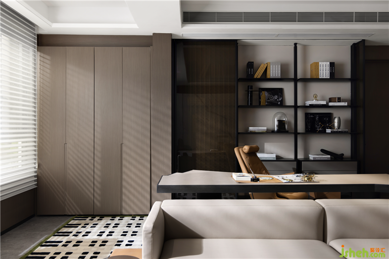 隨著空間的變化,情緒也會(huì)隨之展開(kāi),軟硬裝一體搭配,選用與機(jī)械匹配度較高的咖棕色,為空間的主基調(diào)。