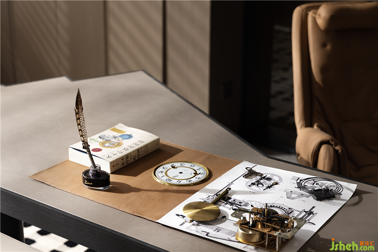 一件零件、一個(gè)齒輪、一塊金屬都代表著主人精密、嚴(yán)謹(jǐn)、品質(zhì)的生活態(tài)度。我們提取元素,樣板間設(shè)計(jì)將“形”和“質(zhì)”兩方面以當(dāng)代藝術(shù)手法融合,在空間進(jìn)行碰撞,衍化新生。