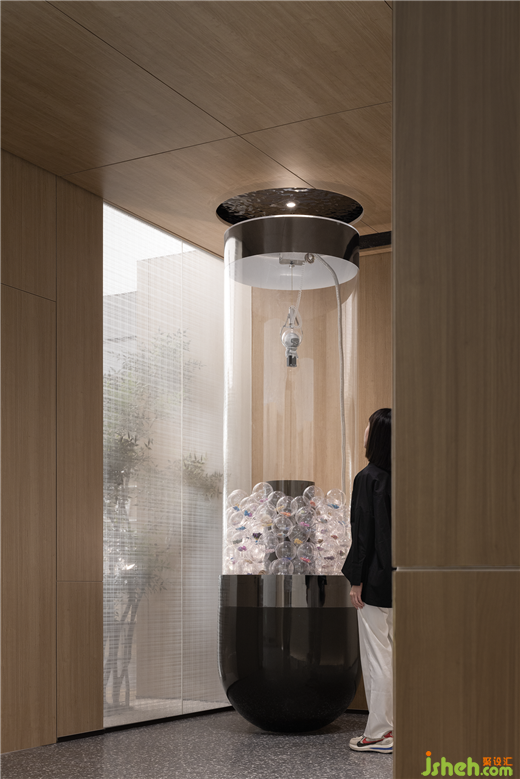 雋語悅己公寓公區(qū)改造設(shè)計(jì),是社會關(guān)懷、行業(yè)研究以及對住客心理把握的結(jié)果。大堂里那座負(fù)重而行的蝸牛雕塑,昭示的就是對城市獨(dú)居青年的真實(shí)洞察。從熟人社會闖進(jìn)陌生人社會,996的工作、收縮的交際圈、淡化的親情紐帶,讓背井離鄉(xiāng)的年輕人漸趨原子化?!拔伵!辈皇怯w彌彰的“我?!?,而是來自真實(shí)生活的無聲吶喊,一種不得不把全部家當(dāng)背在身上、踽踽獨(dú)行的自嘲。