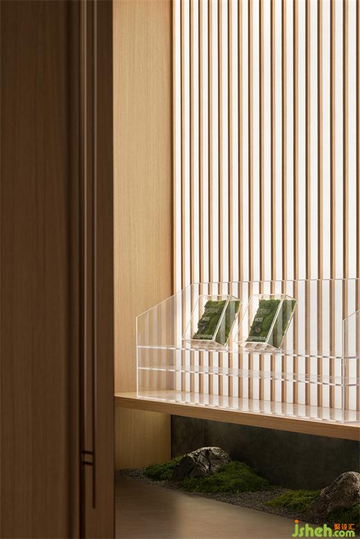 音樂、藝術(shù)書廊、谷物標(biāo)本、節(jié)氣裝置、建筑與設(shè)計(jì)模型,以及設(shè)計(jì)大師椅的入場(chǎng),以散點(diǎn)置入的方式,構(gòu)建著不同的空間互動(dòng)可能。而隨著動(dòng)線深入,木色主導(dǎo)著空間氛圍,使得情緒的舒展得到了溫和的釋放。