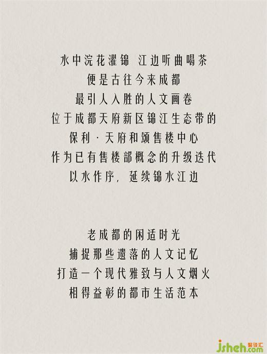 位于成都天府新區(qū)錦江生態(tài)帶的保利·天府和頌售樓中心,作為已有售樓部概念的升級(jí)迭代,成都營銷中心設(shè)計(jì)以水作序,延續(xù)錦水江邊老成都的閑適時(shí)光,捕捉那些遺落的人文記憶,打造一個(gè)現(xiàn)代雅致與人文煙火相得益彰的都市生活范本。
