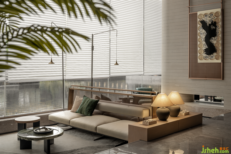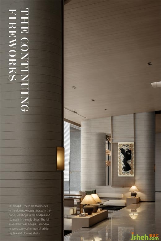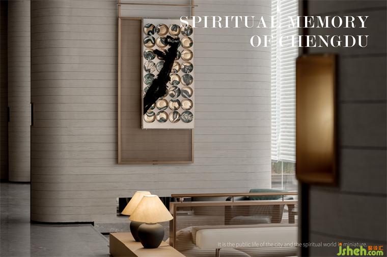 水紋形態(tài)壁燈、錦鯉裝置、陶瓷水墨藝術、窯瓷茶器等細節(jié)與藝術陳列,成都營銷中心設計將傳統(tǒng)文化與現(xiàn)代生活方式相融合,從不同的維度上詮釋著錦水對日常與藝術的滋養(yǎng),喚醒城市歷史文脈,在地域人文景觀的光譜里,為項目場景注入城市的靈魂。