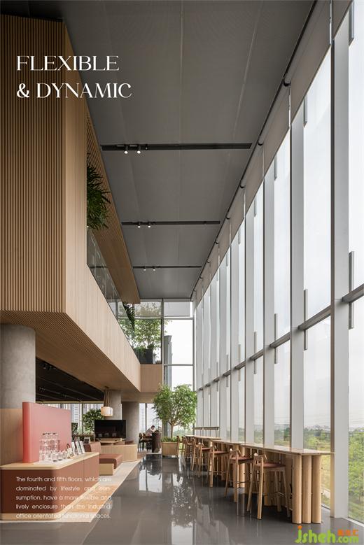 在首層至三層的空間當(dāng)中,會(huì)所設(shè)計(jì)公共空間的配置鼓勵(lì)開放性和靈活性,促進(jìn)社群自然交流和互動(dòng)。通過(guò)設(shè)計(jì)靈活的共享工作空間和多功能設(shè)施,支持不同背景的產(chǎn)業(yè)體和個(gè)人之間的協(xié)作與交流。