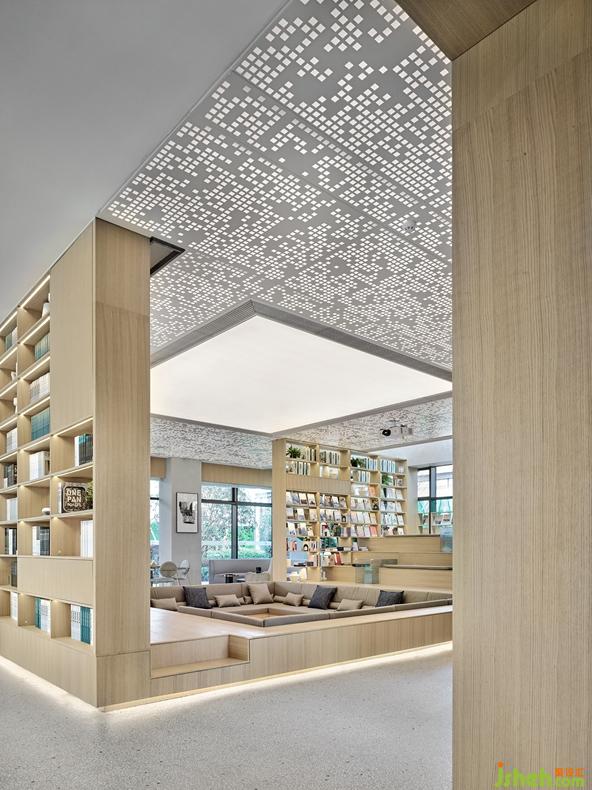 The children's entertainment zone is beside the property model display area, where kids can learn things through lively and delightful activities. The arc-shaped bookshelf, furniture from the Italian furniture brand ME TOO, combined with Legos, make the space interesting and visually attracting.