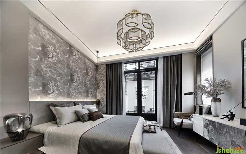 一層內(nèi)間享有庭景的儒雅居室便是老人房。一窗、一門、一畫,清簡(jiǎn)的線條于歲月相匹配,中性色調(diào)的臥房帶給長(zhǎng)者平靜與安寧。