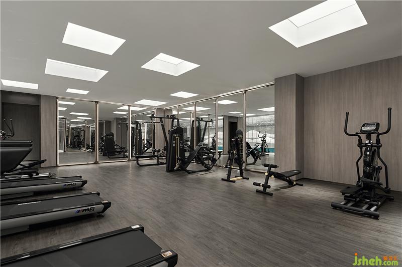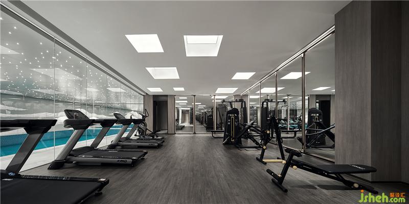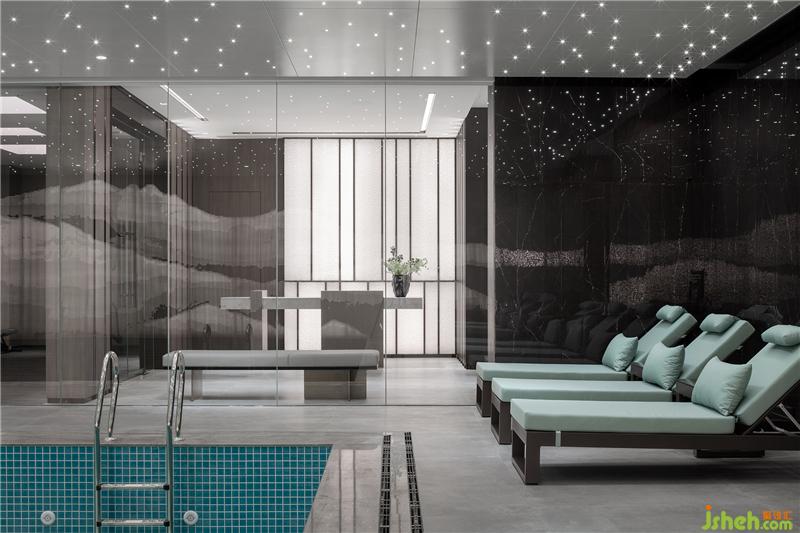 泳池墻面,用現(xiàn)代手法詮釋著江南山水,吊頂星光點點,趣味盎然。休息區(qū)墻面采用保加利亞灰?guī)r板,反射了空間光線,通透輕靈。健身房大面積木紋,則使之充滿自然氣息。更衣室沿用暖灰色調(diào),大理石與木紋搭配,質(zhì)雅低調(diào)。會所設計