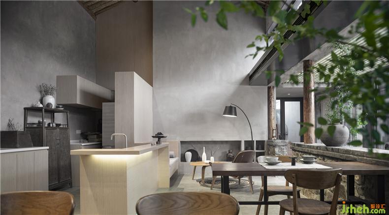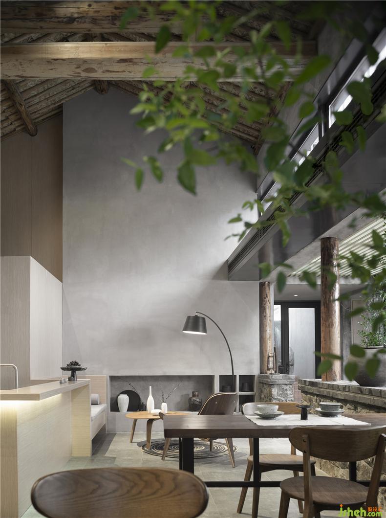 建筑原有的木屋架被更符合結(jié)構(gòu)、室內(nèi)設(shè)計(jì)師功能的混凝土取而代之,拆除下來(lái)的老料被用以修復(fù)保留下來(lái)的建筑部位。梁柱、檁條、老墻都還原著最初的形態(tài),成為記憶的喚醒——在傳統(tǒng)民居建造智慧與當(dāng)代文明建筑語(yǔ)言的碰撞與對(duì)話間,讓來(lái)到小酒館的每個(gè)人都印象深刻。